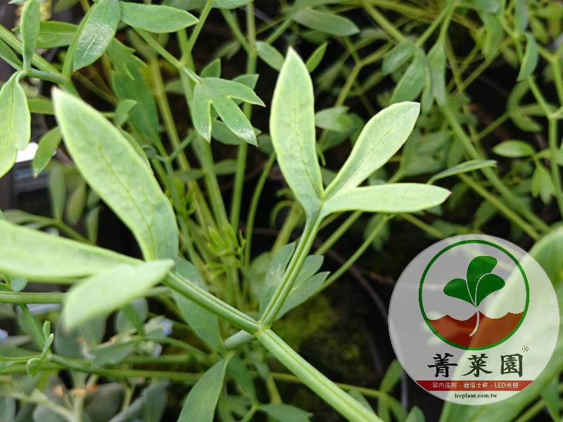 海茴香 Crithmum Maritimum、Criste Marine 通稱: Sea fennel。海茴香是一種多年生傘狀花序植物。具有細條紋鋸齒狀的莖,在 菁菜園 園區生長至60cm高。其氣味特徵與茴香的氣味相似,生長不易限量採收、面對嚴苛生長環境的特性。